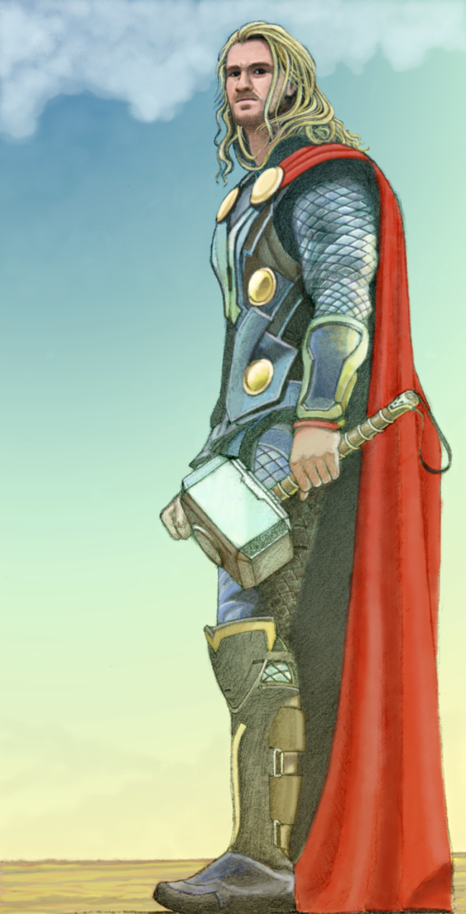 Basado en un boceto de Paolo Rivera del superheroe de Marvel; dibujado a lapiz, escaneado, y pintado digitalmente.